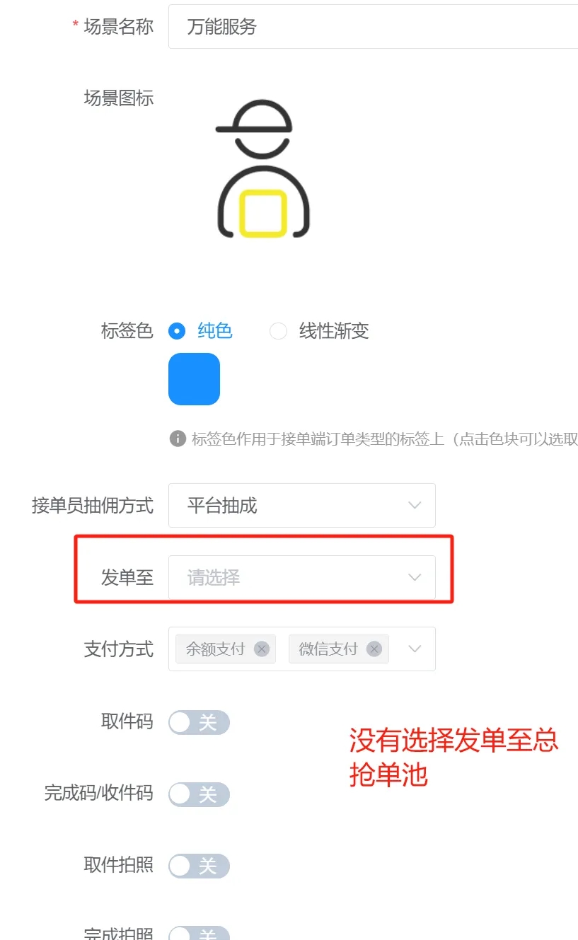 8.场景管理-编辑 没有选择发单到总抢单池