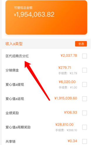 1) 招商员获得分红此处就会有一条记录
